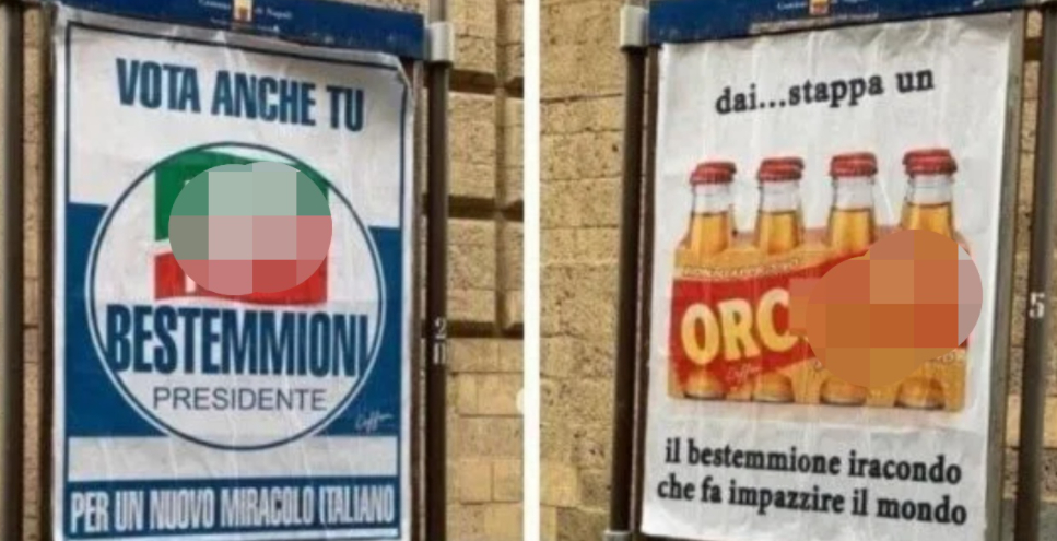 Inoltre per pubblicizzare questa significativa iniziativa, tutta la città di Napoli si è risvegliata tappezzata di manifesti (guarda foto in alto) con messaggi blasfemi, imprecazioni e ovviamente bestemmie.