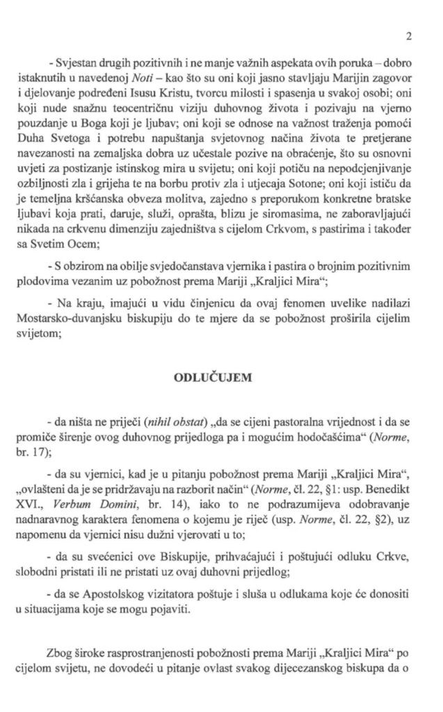 – Infine, tenendo presente che questo fenomeno supera di gran lunga la diocesi di Mostar-Duvan nella misura in cui la pietà si è diffusa in tutto il mondo;
